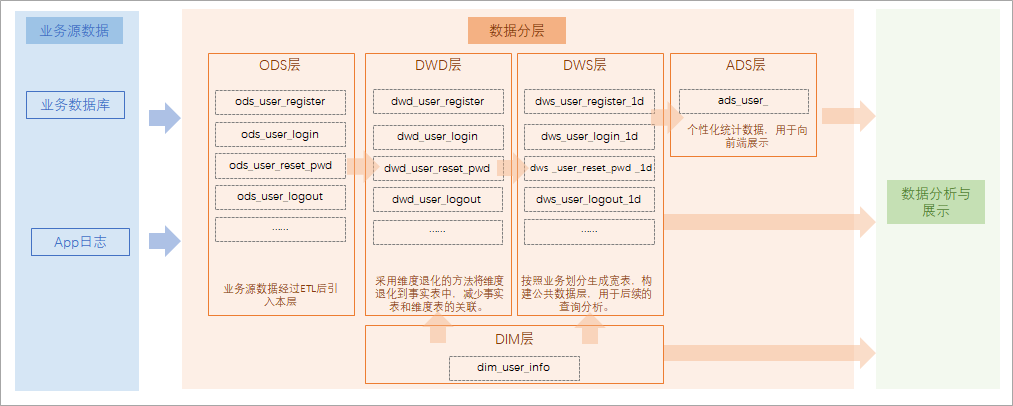 ods开头,并且生命周期为366天。 - 明细数据层 DWD(Data Warehouse Detail) DWD层通过企业的业务活动事件构建数据模型。基于具体业务事件的特点,构建